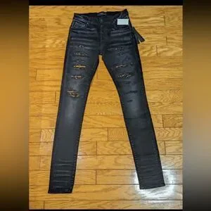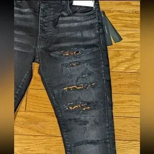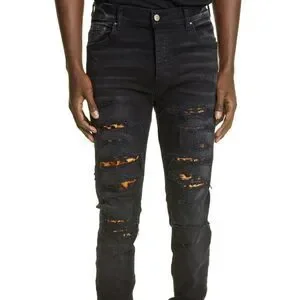 AMIRI Leopard Thrasher Ripped Skinny Jeans, sz 30 Aged Black