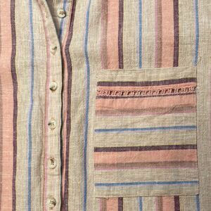 Maeve Anthropologie Shirt Lida Pink Striped & Crochet Top Linen Cotton Medium