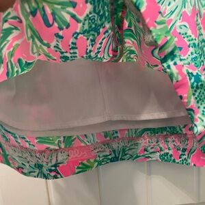 The Little Lilly Classic Shift Dress shines with adorable touches, including top-applied flower lace at the neckline plus pockets, vents, and hem bows.