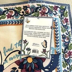 Brighton NWT Butterfly Garden Tote OS Blue Pink Canvas Shoulder Bag