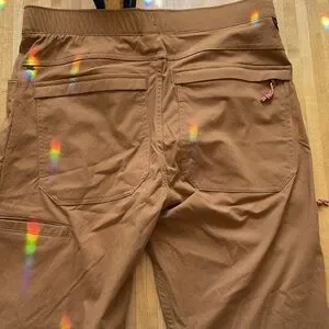 The classic Quandary Pants, now in a jogger silhouette. These multifunctional hiking pants are built of 96% NetPlus® postconsumer recycled nylon made from recycled fishing nets to help reduce ocean plastic pollution/4% spandex plain weave; with a durable water repellent (DWR) finish made without perfluorinated chemicals (PFCs/PFAS) to resist light moisture, and 40+ UPF sun protection. Inseam length is 30".