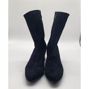 Aquatalia Women's SZ 7 Darianna Black Suede Chunky Heeled Boots Booties #410259
