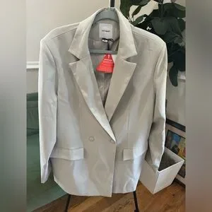 Extro&Vert Light Grey Double Breasted Women’s Oversized office Blazer Size XL