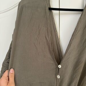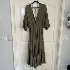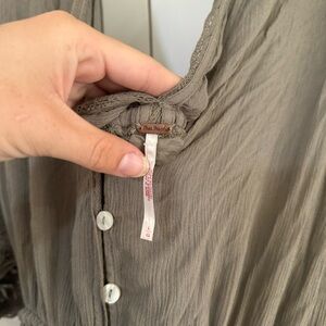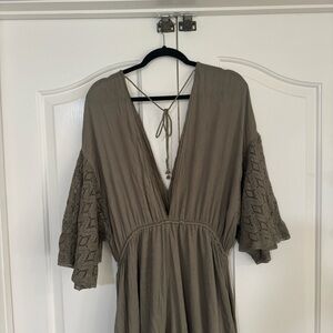 Free People Angela Lace Embroidered Wide Ruffled Leg Cargo Green Jumpsuit Size L