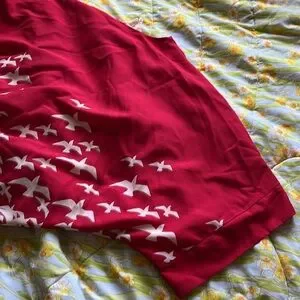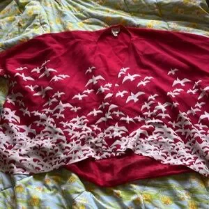 Anthropologie Pins and Needles red, cropped kimono with bird pattern Size M.