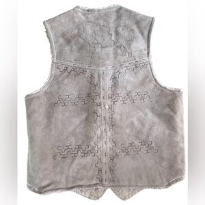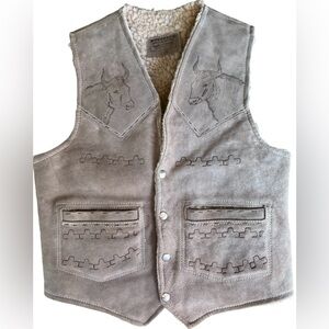 Valenci Vintage Tooled Leather Wool Lined Mexican Western Cattle Vest Size 38