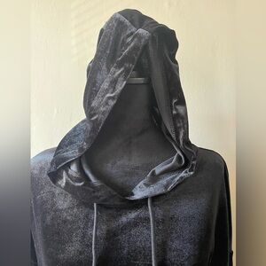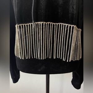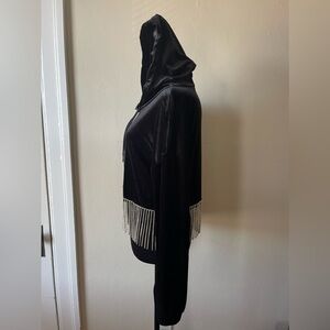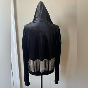 NWOT SuperDown Black velour hooded top w/ rhinestone fringe, size med