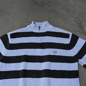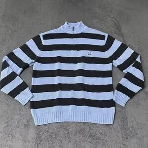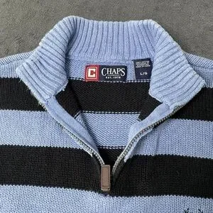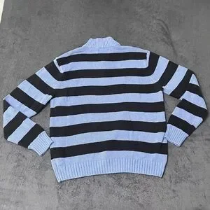 Chaps Ralph Lauren 1/4 Zip Sweater Mens Blue Stripe Mock Neck Blokecore Rugby