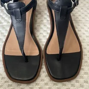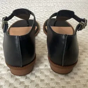 Lucky Brand Black Annamae Leather Wedge Thong Sandals