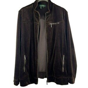 Lauren Ralph Lauren Jacket Womens 1X Brown Full Zip Velour Track Sweater Pockets
