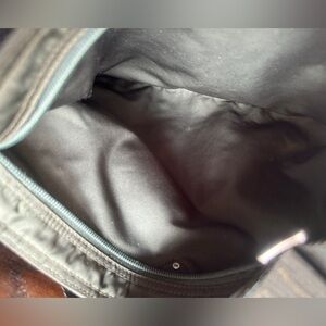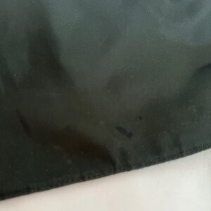 Overall it is in good condition. No lint on adjustable strap. Small stain and runs at the bottom but not that noticeable.