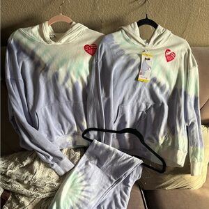 Wildfox French Terry hooded sweatshirt- purple and mint green tie dye.