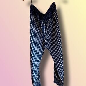 “Our silk dupioni pant, in the season's graphic picnic plaid, has a flattering silhouette. The relaxed shape is cinched at the waist, roomy throughout the leg and tapered to a gathered ankle. Pair with the matching tunic or wrap top for an unexpected take on pajama dressing.”