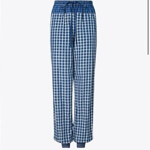 Tory Burch NWT Size 10 Picnic Plaid Silk Pants Blue and White