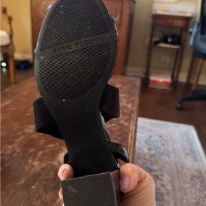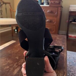 Anne Klein Patent/Fabric Sandals. Black Size 10.