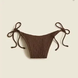J.Crew side tie smocked bikini bottoms. Moderate to cheeky coverage. Brown. Size Small. Adjustable side ties.