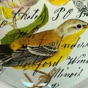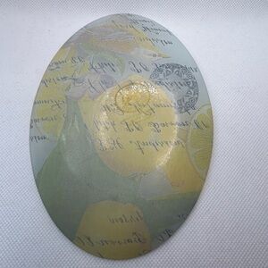 In great condition and beautifully designed. Colorful with a beautiful bird. Pretty for a bathroom or any place that needs a bright spot. You need this.