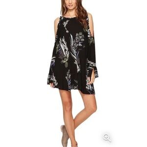 Free People Clear Skies Are Blue Floral Printed Tunic Cold Shoulder Dress Sz M