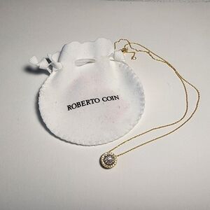 Roberto Coin Siena 18K Gold Small Dot Pave Diamond Pendant Necklace