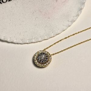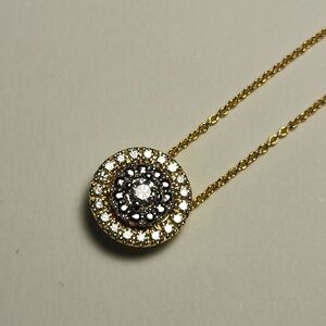 BLACK FRIDAY SALE 18K White & Yellow Gold Siena Diamond Halo PendantNecklace, 16-18" $2090.00 Retail · From the Siena collection · A radiant diamond halo pendantnecklace in two-tone gold · Diamonds: 0.21 ct. t.w.;color/clarity: GH/SI · 18K yellow gold; 18K white gold · 16-18"L · Lobster clasp closure · All gemstone carat weights (ct.t.w.) are approximate; variance may be 0.05 carat. · White gold is surface-coated withrhodium to enhance metal color and shine; it may wear off over time requiringreplating. · Signature synthetic ruby on interior · Made in Italy