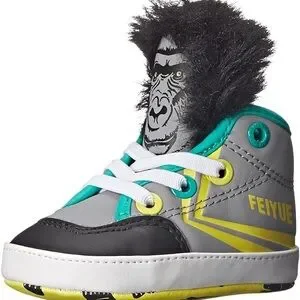 Feiyue DELTA MID ANIMAL (Infant) - Feiyue (Fay-way) is a classic martial arts shoe that was updated by a group of French designers. Today we offer this famous brand for children in fun colours, whimsical animals, and easy designs for a baby to wear every day. This grey gorilla face sneaker has stretch laces for easy on and off.