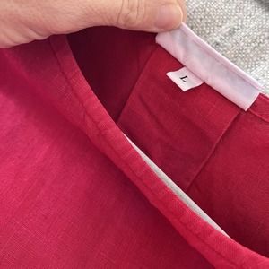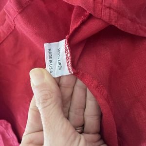 bryn Walker L Red 100% Linen Top Blouse Bell Sleeve Woven Lagenlook Minimalist