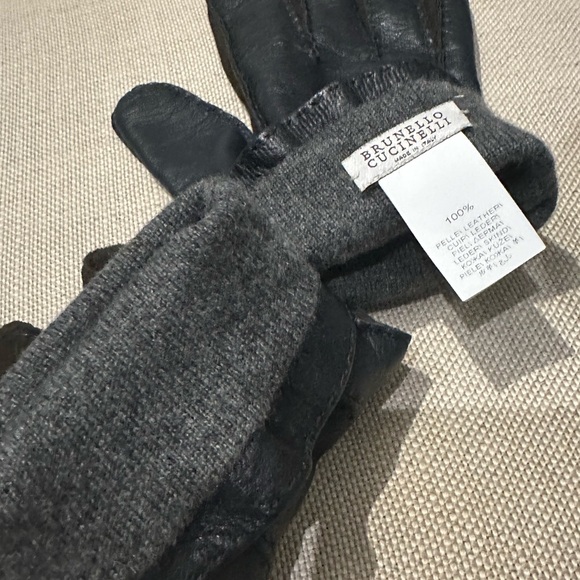 Brand New Never Worn Brunello Cucinelli Leather Gloves with Cashmere Interior
