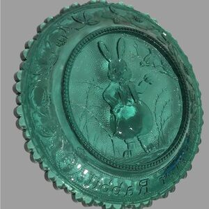 Vintage PAIRPOINT Glass Cup Plate #8 Peter Rabbit, Green Briar Green