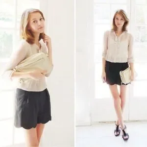 The Kooples Black High Waist Scallop Pleat Shorts