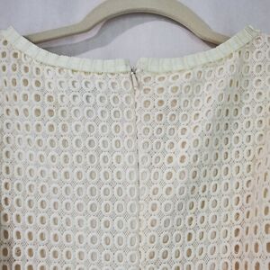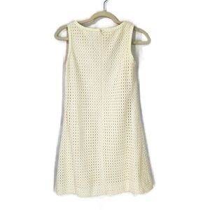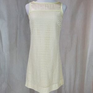 Vintage ( White Tag ) Lilly Pulitzer Sophia Crochet Eyelet Dress Size 0. Cotton/Silk/Acetate, fully lined. Color is Vanilla ( pale yellow ) very pretty cream/ivory color. Features elegant silk panel at chest and gathered grosgrain ribbon trim. Very retro! Beautiful used condition! Great brunch, shower, party, bridal dress! Wear to tea or a garden party!