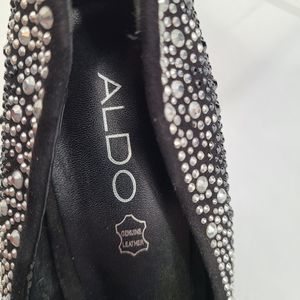 Aldo Black Satin & Rhinestone Stiletto Platform Pumps Size 9.
