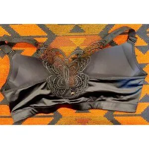 NEW Doosinki Women's Plus Size Black Butterfly Bra Front Close. Wireless. 42/95