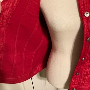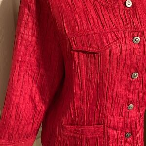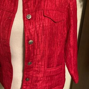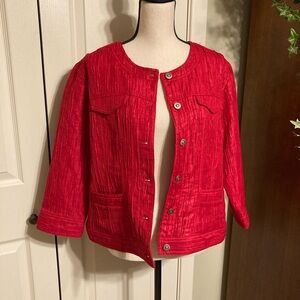 Ruby Rd crop jacket. Red with a touch of shimmer. Has 2 front pockets. Size 16