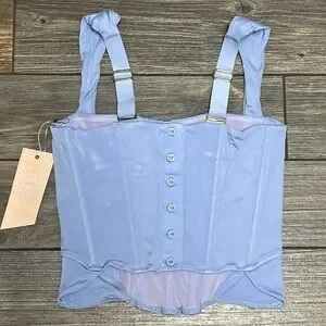 NWT FREE PEOPLE x HAH Knock Out Corset boudoir Top Size XL Blue Periwinkle