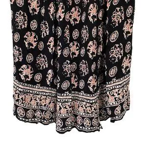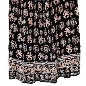 This Liz Baker Essentials vintage maxi skirt is a must-have for any wardrobe. The black floral pattern gives it a gypsy vibe, while the pleated design adds a touch of elegance. Perfect for any occasion, this size M skirt is made from comfortable rayon.