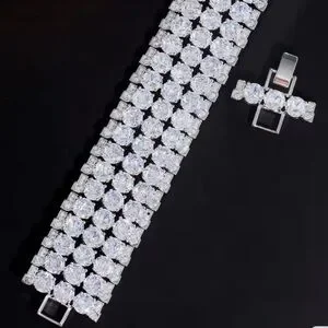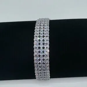 Set with 3 rows of round brilliant white zircon gems each weighting 0.75ct.tw totaling 58.5 carats; each secured in 4 prong settings
