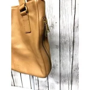 Very nice soft leather bag from fossil. zipper around sides and across bottom to increase width of bag somewhat. Bag does not come with crossbody strap but has two handles. Large interior compartment with one zip and two slip pockets.
