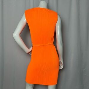 Stella McCartney Orange Ribbed Sleevless Midi Sheath Dress with removable belt
