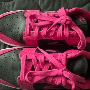 Nike womens Dunk Low hot pink and black leather, brand new with no box. Smoke free home.