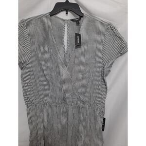 Express Gray Mini The V-neckline wide-leg Cropped Jumpsuit Romper Striped Sz Lg