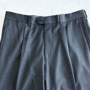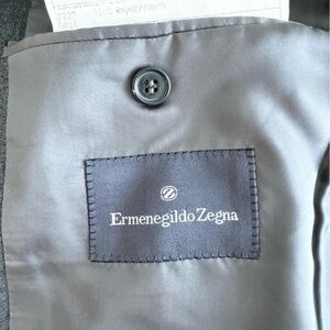 Ermenegildo Zegna Wool Suit. Charcoal grey colour. Size 52R (European sizing, not US). 3 Button closure, 4 button sleeve, 2 rear side vents. Made in Spain. 100% wool. Gently used but good condition. There are two spots of wear on the jacket inside lining (see 11th photo) and on pant in front of zipper (see 14th photo). Can be repaired. Purchased from either Harry Rosen or Holt Renfrew. Approx. 15 years old, but was only worn for a few years. Premium suiting fabric, can be used as is, resize, or purchased for fabric.