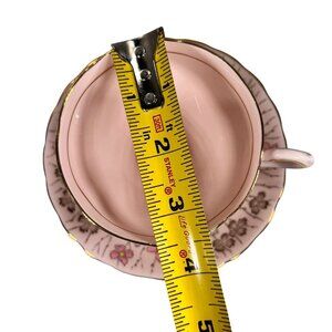 Vtg Tuscan Hand Painted Pink Floral Tea Cup Saucer English Pedestal Gold Trim