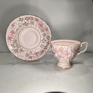 Vtg Tuscan Fine English Bone China Pink Floral Tea Cup Saucer Gold Trim Pedestal