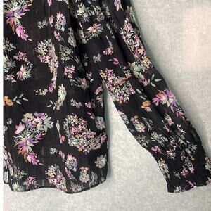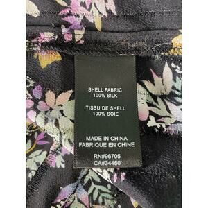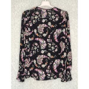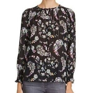 Rebecca Taylor Black Silk Floral Bouquet Keyhole Neck Long Sleeve Top Size 8