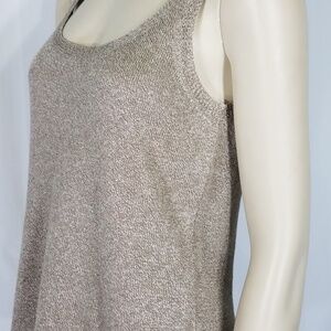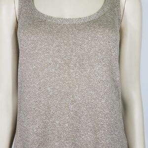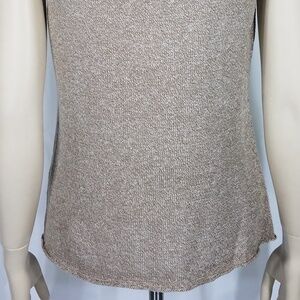 Eileen Fisher tan beige sleeveless linen blend knit top thin sweater women Small
