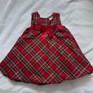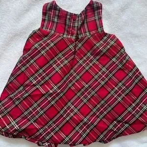 My daughter won’t be able to fit into this by Christmas time. It’s such a cute Christmas dress or for the holidays in general. In really great shape, just wrinkled from being folded up.