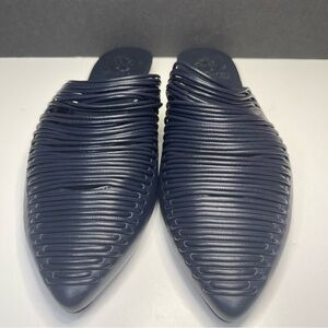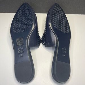 Tory Burch Sienna Woven Navy Blue Leather Mules Slide Sandals Shoes Size 6M