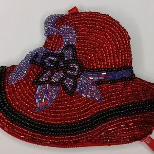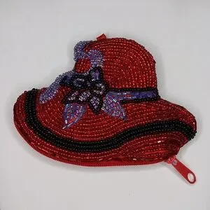 Red hat society vintage beaded hat purple floral bow zippered coin purse