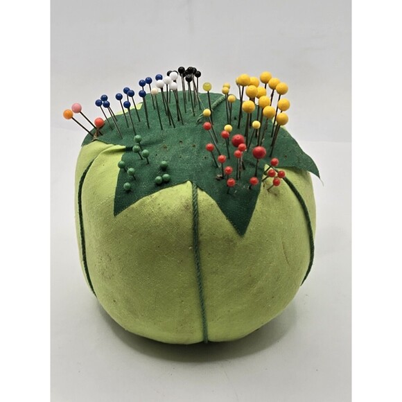 Pin Cushion Two Tone Green Handmade Green Pins Vintage 70's