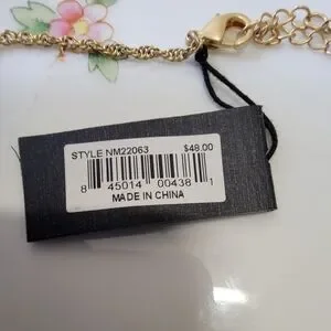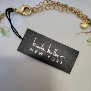See pics above for measurements of this beautiful new with tag ,Jeweled Goldtone Nicole Miller choker. Ready to gift!